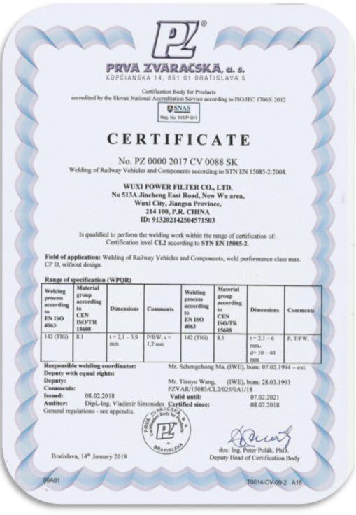 全面貫徹實施ISO9001質(zhì)量管理體系和STNEN15085-2國際焊接體系認證,公司通過建立一系列的質(zhì)量目標(biāo),構(gòu)成目標(biāo)體系,并根據(jù)實際情況的變化,改進質(zhì)量目標(biāo)要求值,在《質(zhì)量手冊》的指導(dǎo)下,制定一系列控制程序。